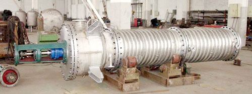 加熱筒身內壁經專用機床加工和拋光,且與兩端法蘭連接麵一次加工而,保證設備整體圓心度。經過拋光(必要時鏡麵拋光)的筒身內壁光滑潔亮,不易粘料和結垢,有效保證了設備的高傳熱係數。
